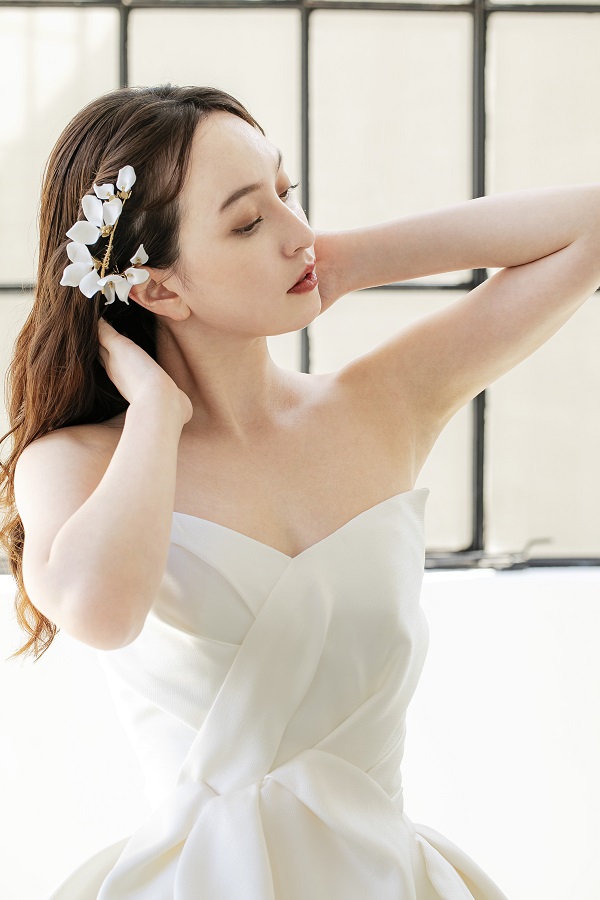 可憐さと洗練を兼ね備えた存在感を放ち まるで一輪の大輪の花をまとったかのような華やかさで