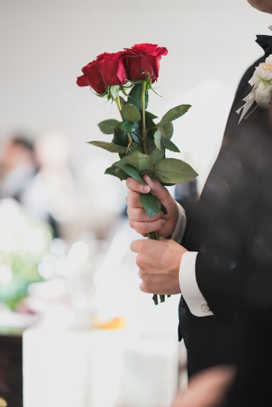 ご新婦様の大切な方々からご新郎様へローズを渡してもらい集まった12本のローズをご新婦様へプレゼントされ